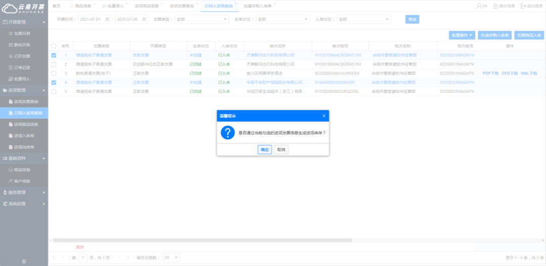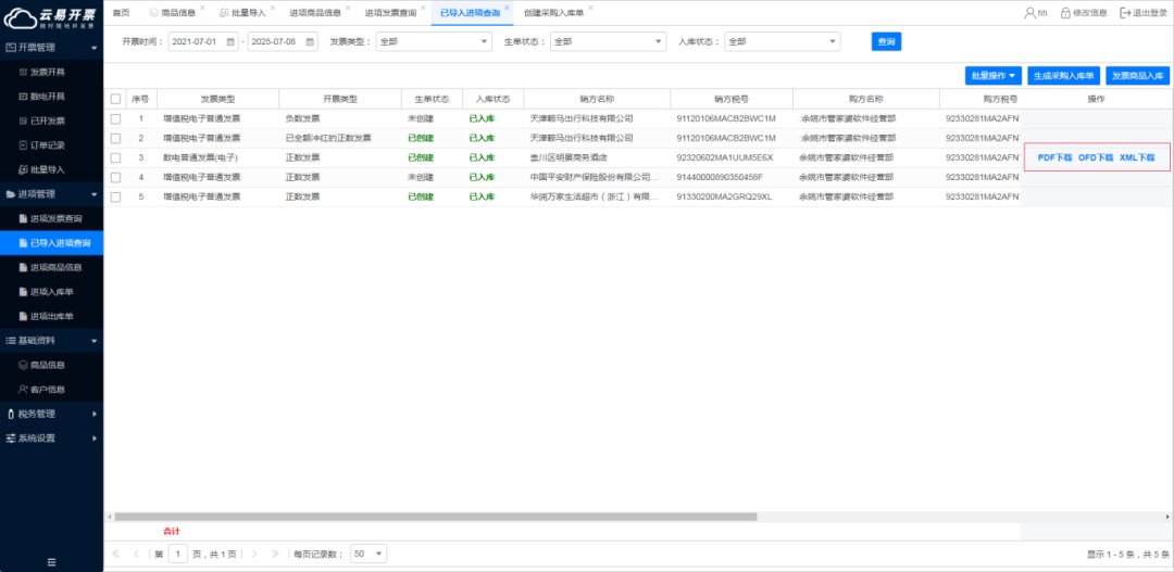 痛點(diǎn):某制造業(yè)企業(yè)每月需處理500+張進(jìn)項(xiàng)發(fā)票,手工錄入發(fā)票信息耗時(shí)費(fèi)力,庫(kù)存數(shù)據(jù)與發(fā)票內(nèi)容常不一致,導(dǎo)致采購(gòu)計(jì)劃偏差和稅務(wù)抵扣風(fēng)險(xiǎn)。 直連電子稅務(wù)局,進(jìn)項(xiàng)發(fā)票數(shù)據(jù)批量獲取、一鍵下載,再也不用等銷方慢慢傳,發(fā)票來(lái)了系統(tǒng)自動(dòng) “接”,省出大把核對(duì)時(shí)間。