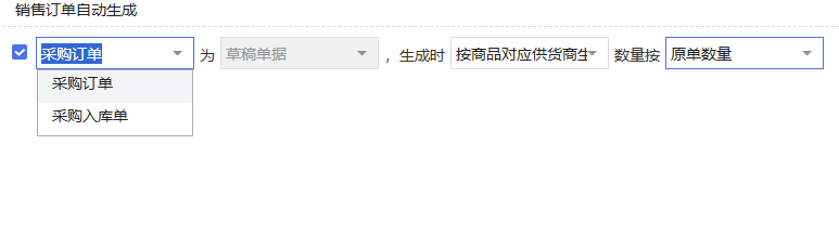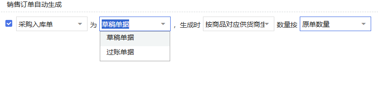 當(dāng)配置為“采購入庫單”的時(shí)候還能決定是否生成為草稿或過賬單據(jù)。