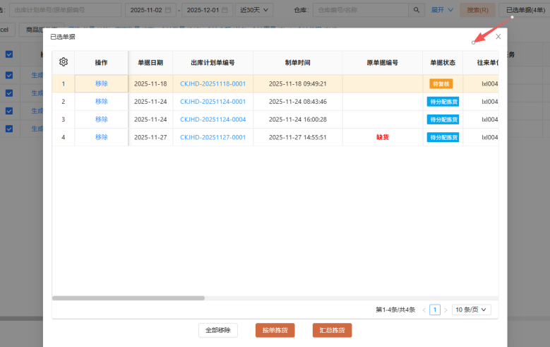 2.待分配揀貨頁面,增加已選單據(jù)列表