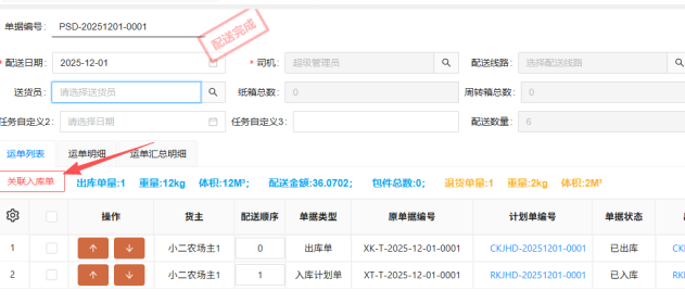 4.已完成配送任務(wù),支持一鍵關(guān)聯(lián)已入庫狀態(tài)入庫單